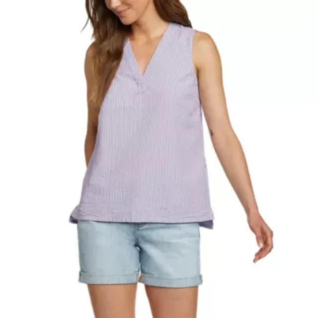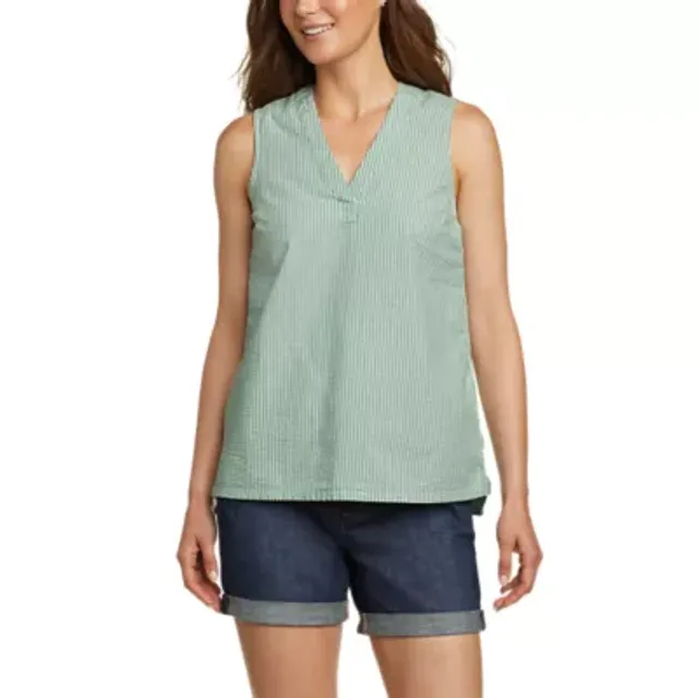 Eddie Bauer Women’s Sleeveless Sunray Seersucker V-Neck Tank